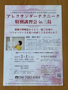 今日は、アレクサンダー・テクニークの講座を受けてきました